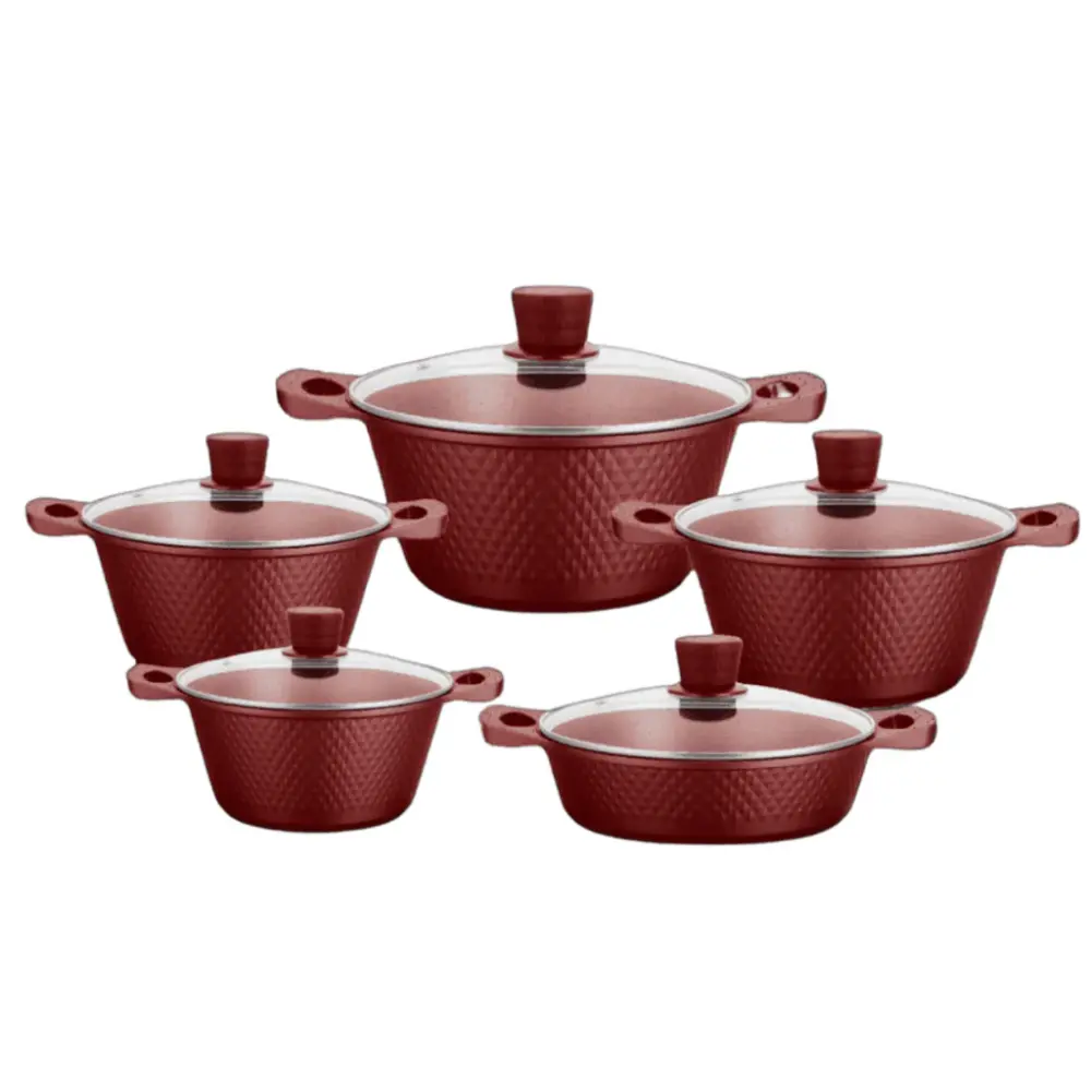 10 PCE DIAMOND EMBOSSED COOKWARE SET BROWN