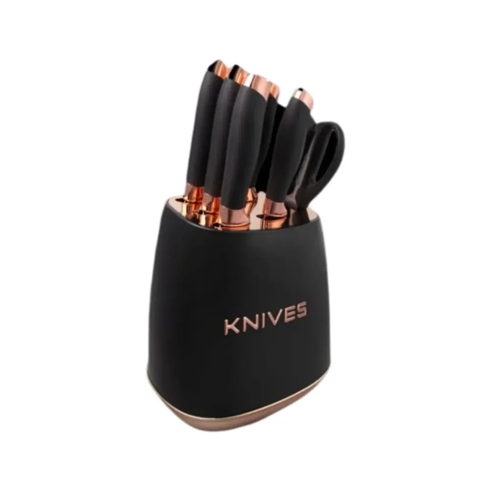 7 PC MILANO KNIFE SET BLACK/GOLD