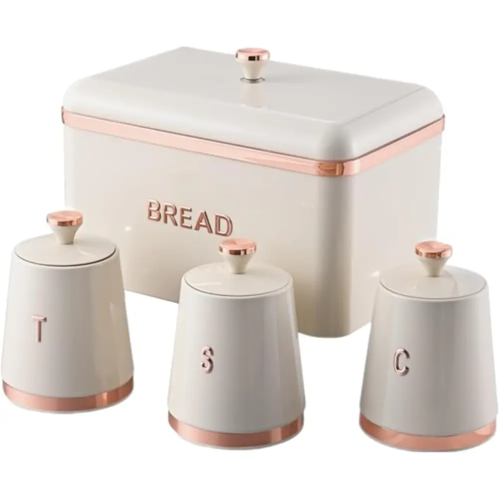 BREAD BIN WITH 3 PC CANISTER SET CREAM
