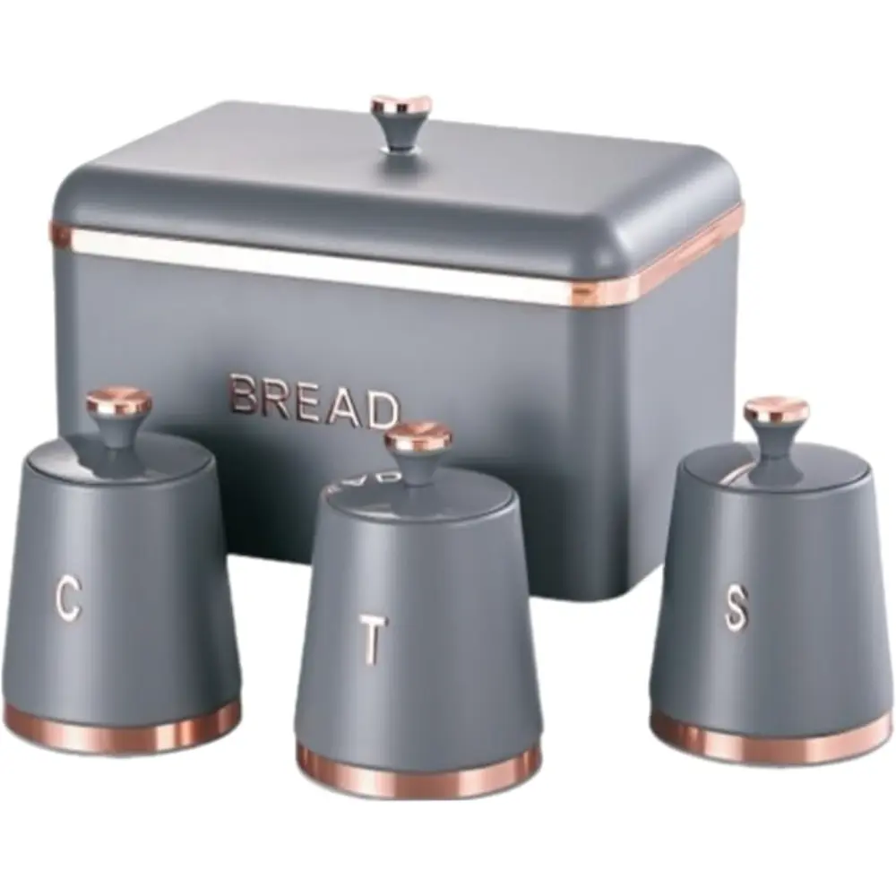 BREAD BIN WITH 3 PCE CANISTERS GREY