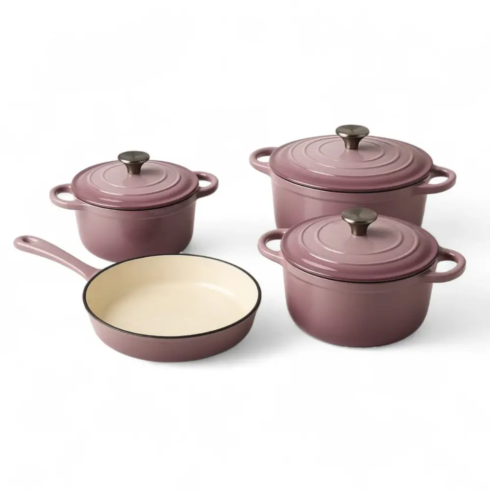 7 PC CAST IRON POT SET PINK