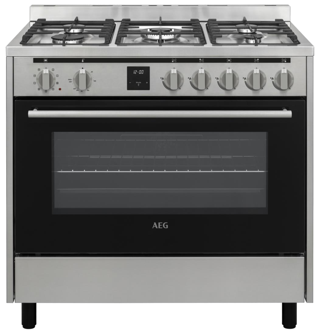 This AEG 90cm Stainless Steel Gas/Electric Cooker is built for accurate and quick heating cooking with 5 burners, featuring a wok burner. Equipped with a flame failure safety feature for your peace of mind. The oven provides a 100L capacity.