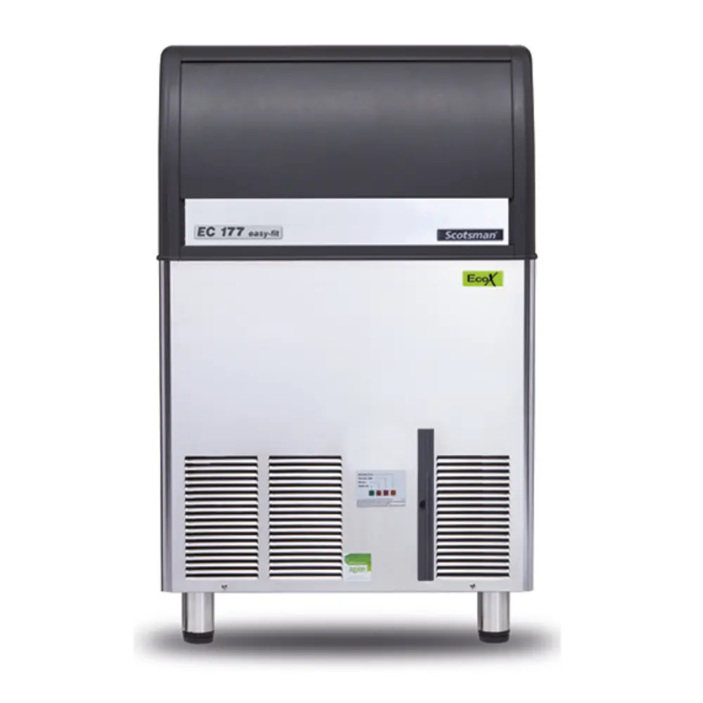 Undercounter Supercube ice maker with built-in drain pump, produces 84Kg every 24hrs, 48Kg storage bin, air cooled, single phase power.