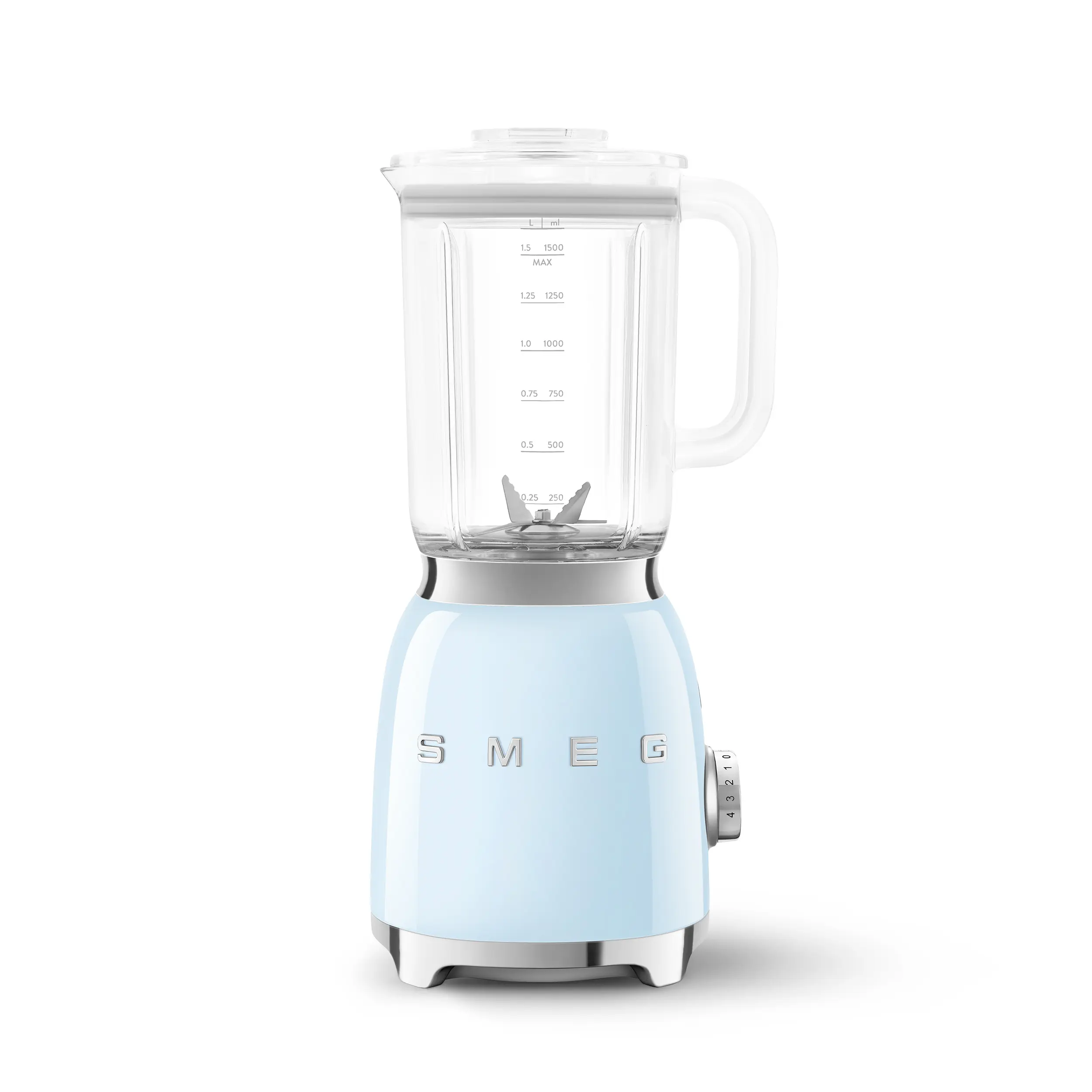 1.5L TRITAN™ RENEW BPA-FREE jug capacity (6 cups) • Removable, double stainless steel blade system (dishwasher safe) • 4 speed power control • 4 pre-set programmes: Ice crush, smoothie, green smoothie and auto clean • 18000 rpm max spin speed • Smooth-Start function • Overload motor protection • Built-in cord wrap • Anti-slip feet • 800 W