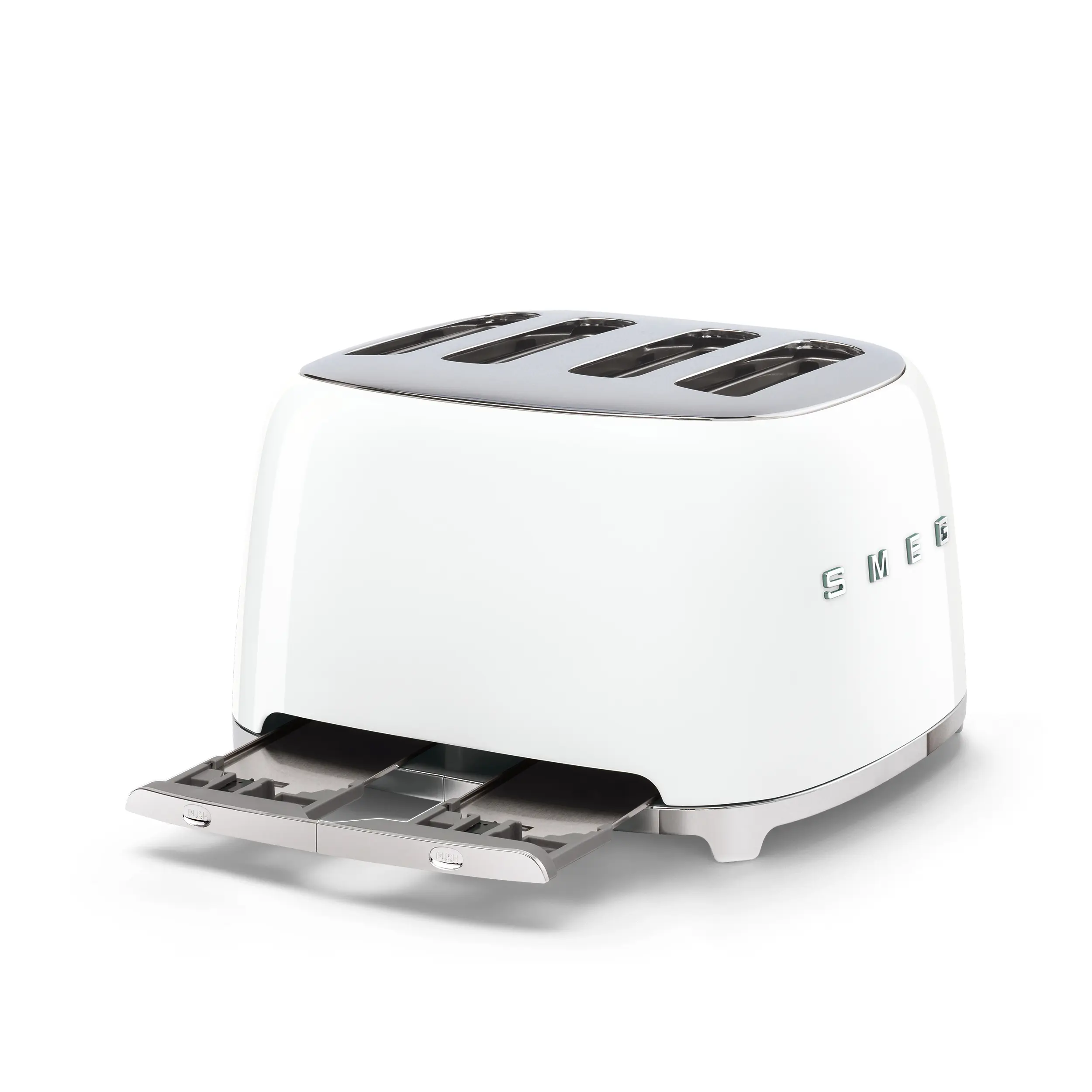 4 extra-wide single, double length, 36mm toasting compartments (with self-centering racks) • Multifunctional interface with 2 independent toasting zones each with 6 browning levels and 3 preset programmes (REHEAT, DEFROST & BAGEL mode) • Automatic pop-up • 2 Removable stainless steel crumb tray • Built-in cord wrap • Anti-slip feet • 2000 W
