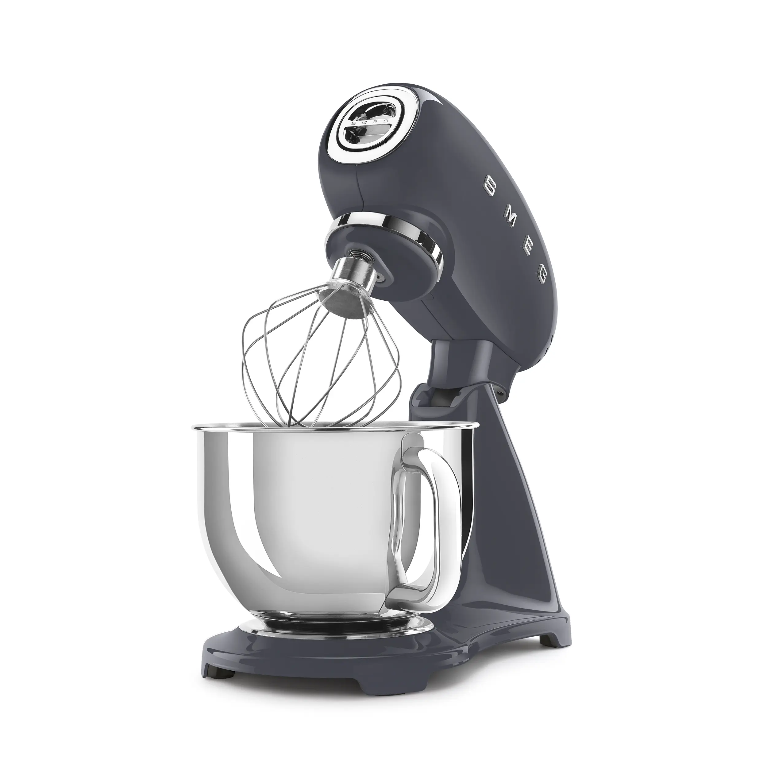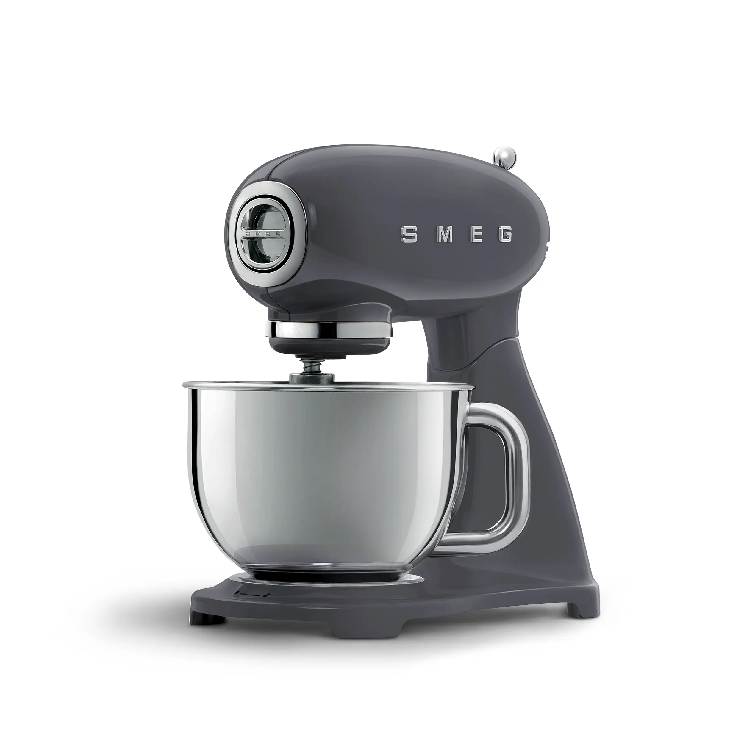 Smeg’s collection of small appliances adds 50s style glamour to your kitchen. This multi-functional beauty is an inspired addition to any countertop space. It features a strong 800W motor, 10 variable speeds, planetary mixing action for a completely incorporated mixture and a durable die-cast aluminium body in one of the 4 stylish colour finishes. It also includes an accessory port for optional attachments to add to its functionality. Take your mixing and blending to a new level with this iconic Smeg Full Colour Retro Stand Mixer.